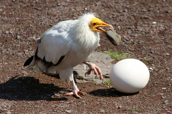 Some animals can use tools. The Egyptian vulture picks up a stone in its beak to use as a hammer. It then smashes open an egg so it can eat what is inside. But if we replace the real egg by a painted wooden one, the vulture still keeps trying to smash it. So maybe this bird is not so clever after all! The cleverest birds are probably members of the parrot and crow families.
